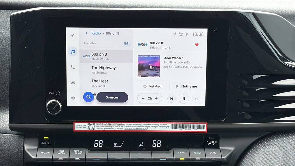 - 8-in. Toyota Audio Multimedia touchscreen with USB-A media port, hands-free phone capability and music streaming via Bluetooth®® wireless technology, SiriusXM® 3-month trial subscription. See toyota.com/connected-services for details.